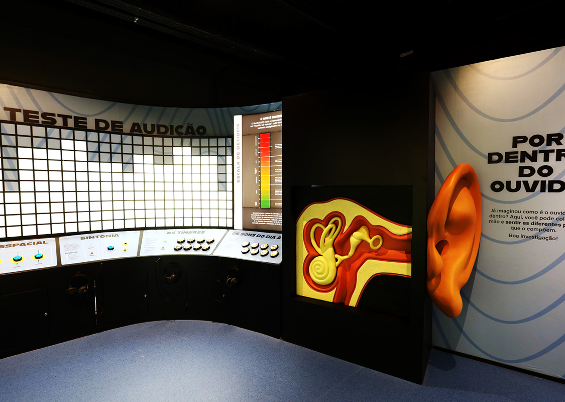 Essa exposição conta com muitos experimentos incríveis para aguçar todos os sentidos. Já imaginou poder colocar o braço inteiro dentro de um ouvido gigante? E de poder ver como o sabor e o cheiro chegam até o cérebro? E ainda ter a vivência com o alfabeto braile e poder ver o desenho da sua voz?